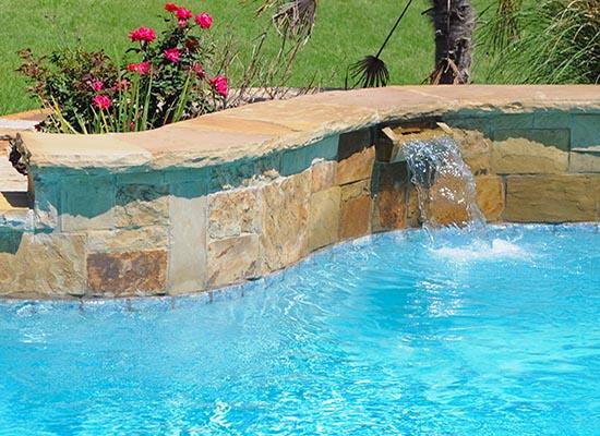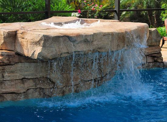 Rock waterfalls create a natural look while adding the soothing sound of falling water to your poolscape.