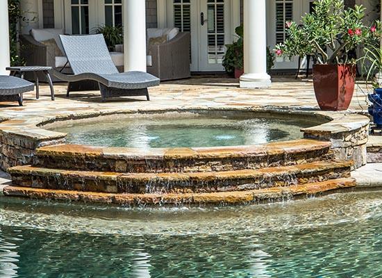 Create the best of both worlds by adding a spa to you poolside. Then create a water spillover that creates a natural waterfall!